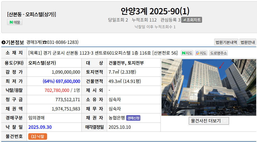 ![]() - °¨Á¤°¡: 10¾ï 9,000¸¸¿ø - ÀÔÂûÀÚ: ´Üµ¶ - ÀÓ´ë½Ã¼¼: º¸Áõ±Ý 5,000¸¸ / ¿ùÂ÷ÀÓ 330¸¸ - ³«Âû°¡: 7¾ï278¸¸¿ø(65%) |